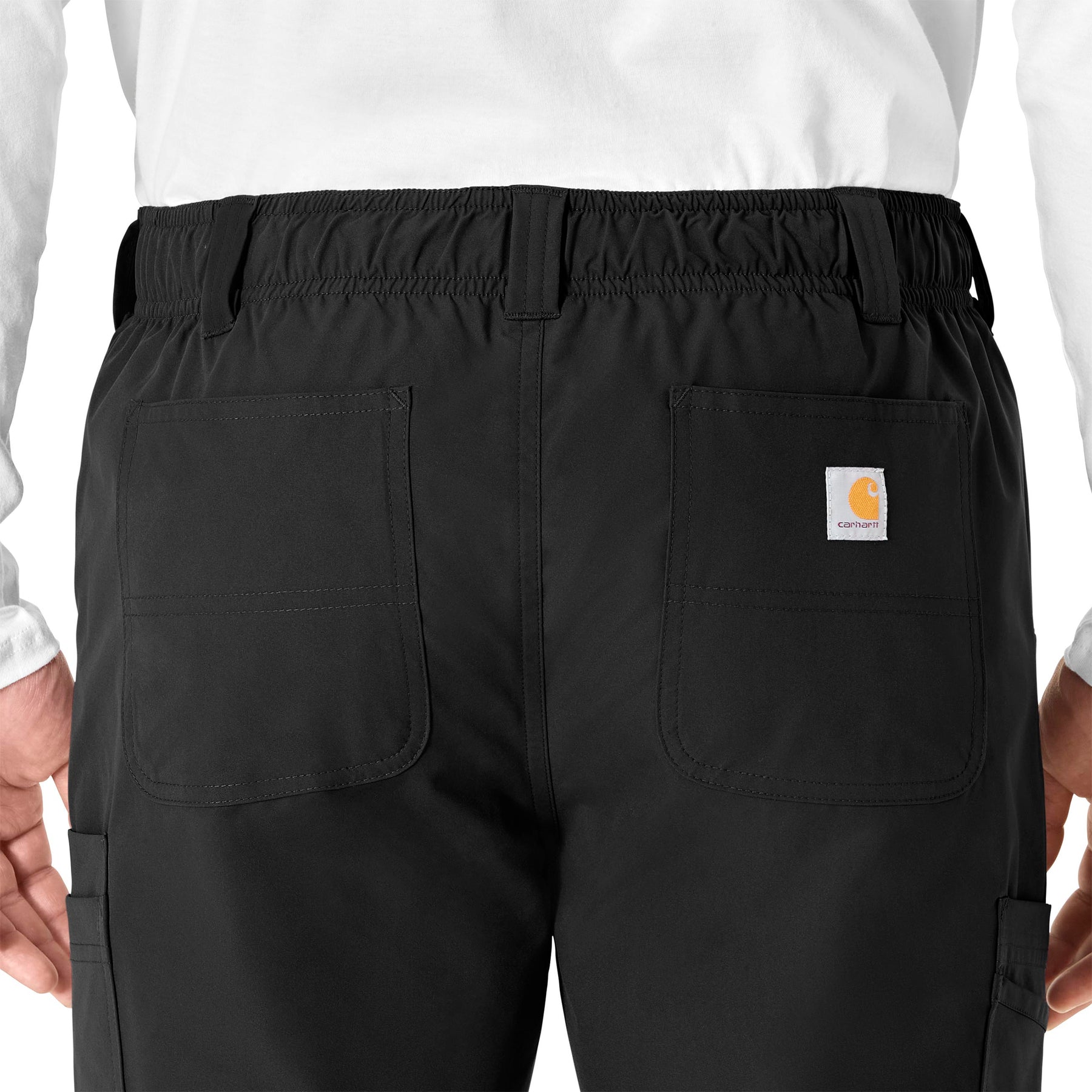 Carhartt Men’s Force Essentials Straight Leg Pant is built with all the features men ask for in medical scrubs. These scrub pants are packed with convenient features like a functioning zipper fly, snap closure, and a full elastic waistband with 7 belt loops total! With the addition of the fully constructed waistband with a drawstring, these scrubs allow you to achieve the perfect fit with every wear. The durable stretch ripstop fabric is reinforced with double-needle stitching at the inseam and added comfort thanks to the wider 7 3/4 leg opening. The fabric is enhanced with FastDry, Rugged Flex Stretch and Stain Breaker Technology so during your hectic shifts the fabric stays dry, moves with you and those inevitable stains are released with ease. Functionality is always a factor when designing Carhartt scrubs and these men’s scrub pants were built with 10 pockets! Two easy to access front and back pockets, a triple cargo pocket and angled top accessory pocket with a pen holder. An additional cargo pocket rounds out all your compartment needs for storing your much needed essentials. You won’t find a more functional pair of men’s scrub pants than this!