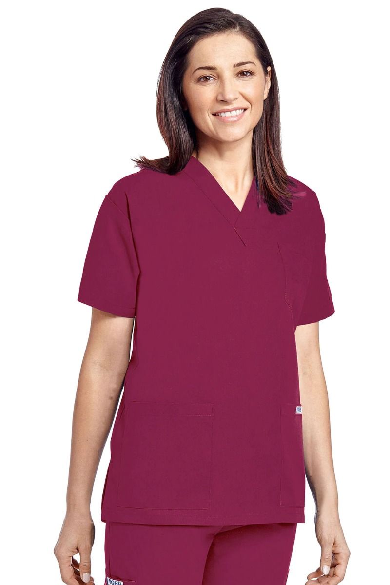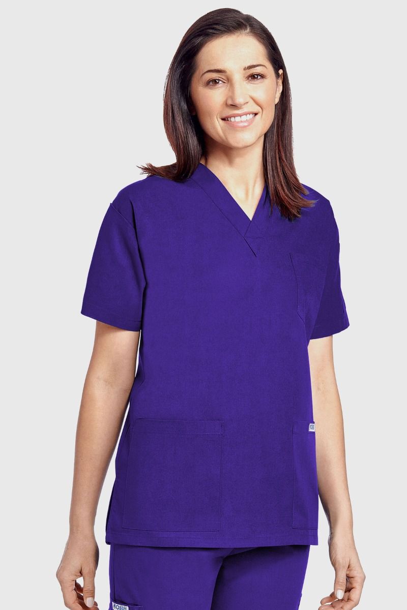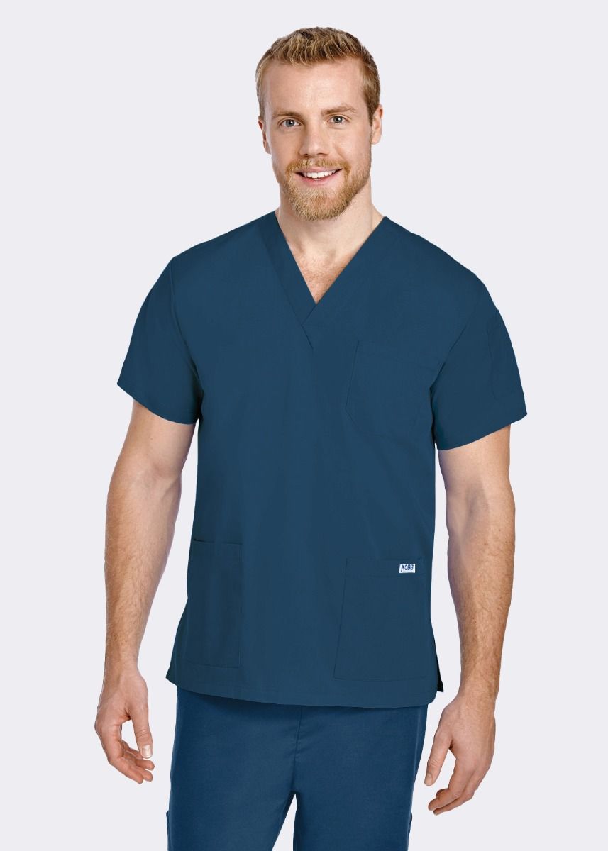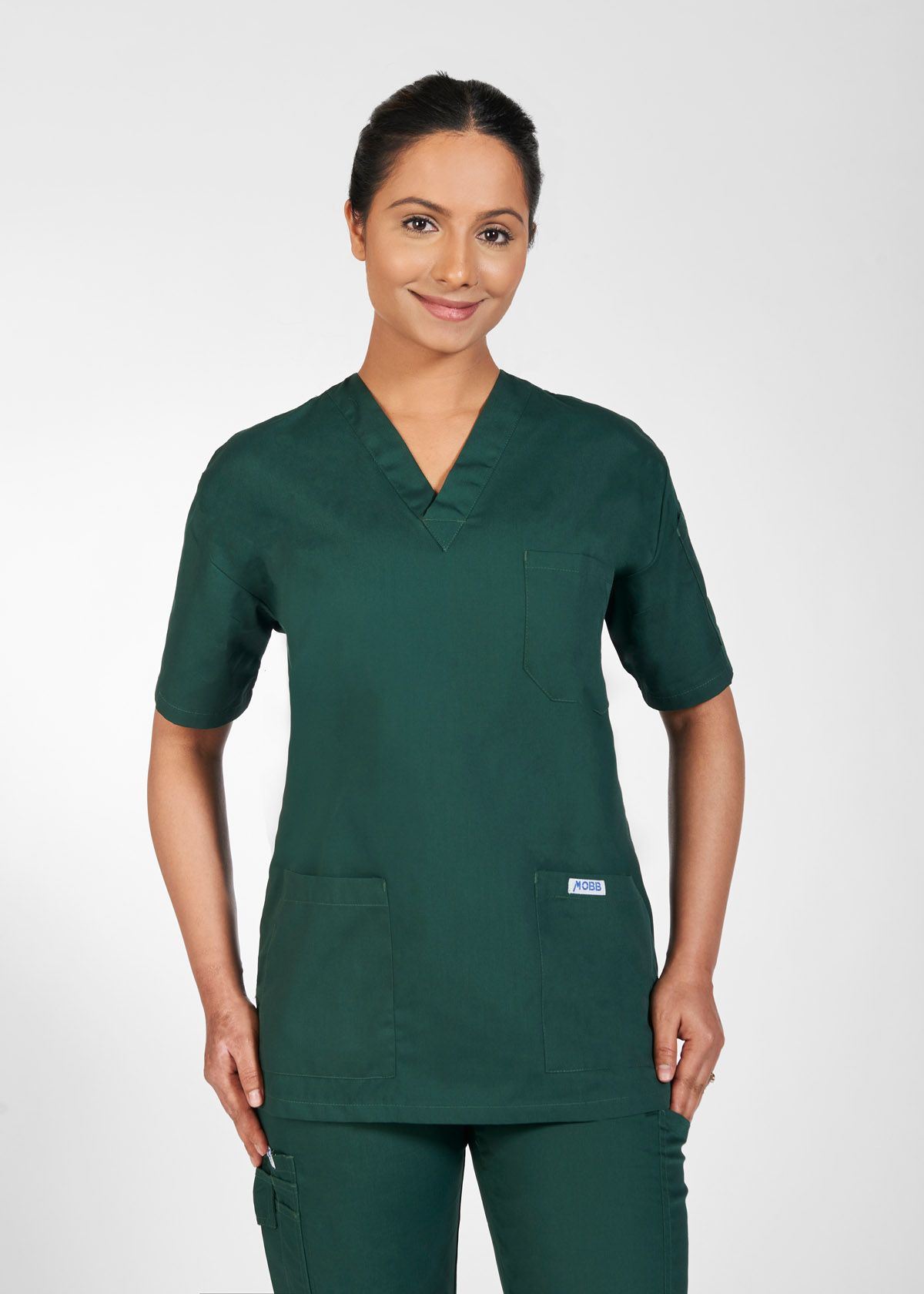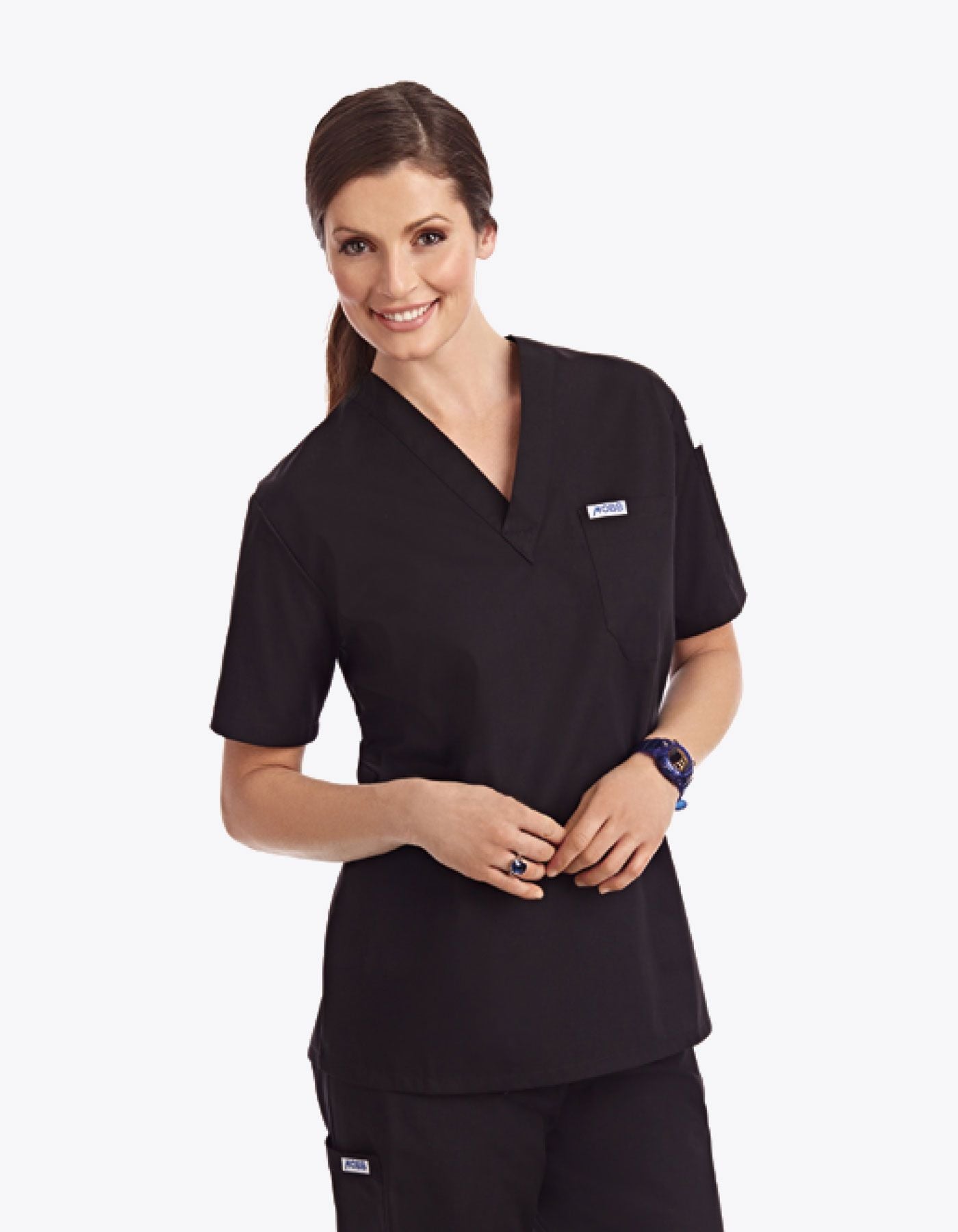 A classic v-neck scrub top popular among men and women. This top has a slightly longer hem line making it an excellent choice for anyone with a taller stature. This top has three front pockets, one shoulder pen pocket and is available in every MOBB color.