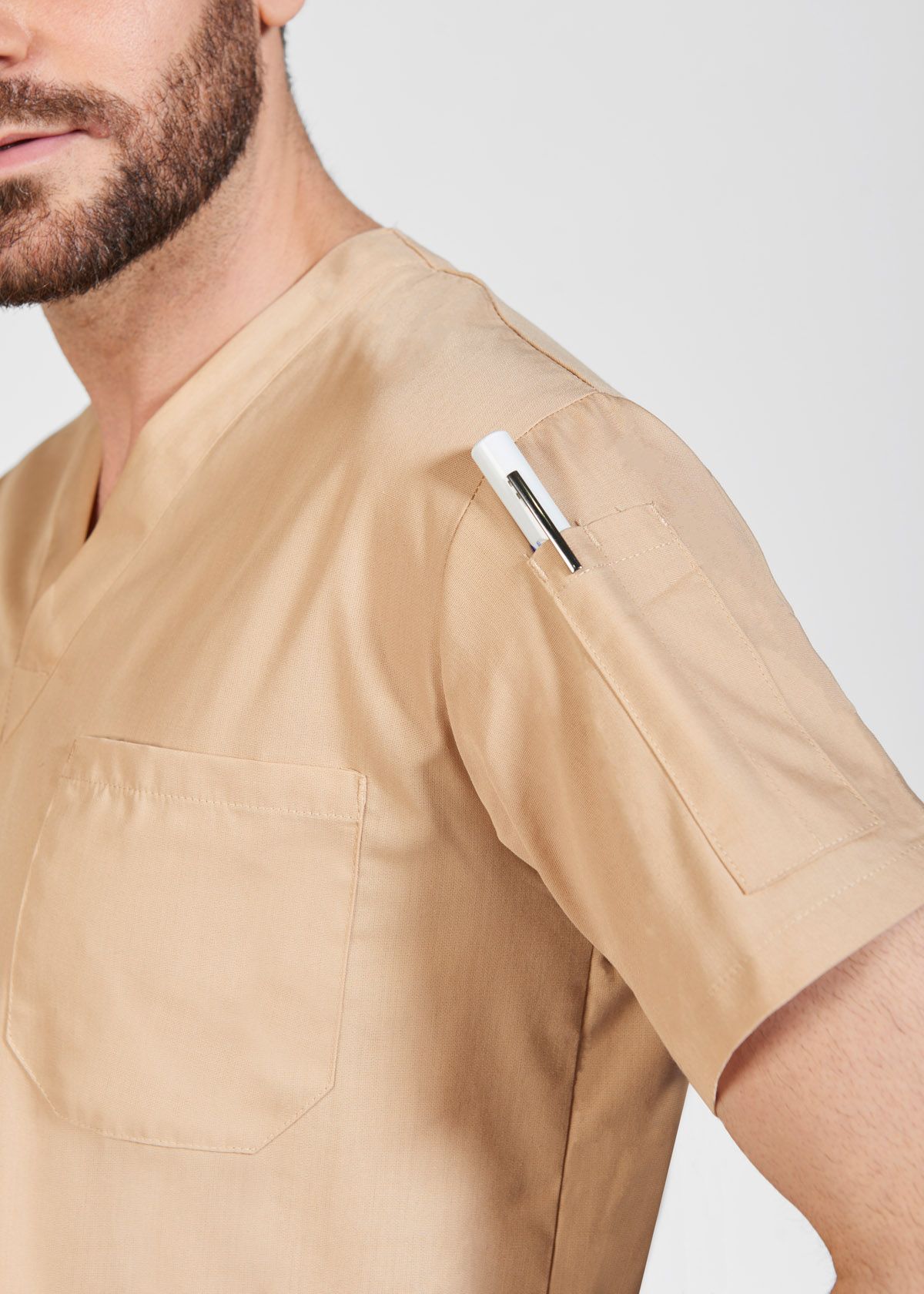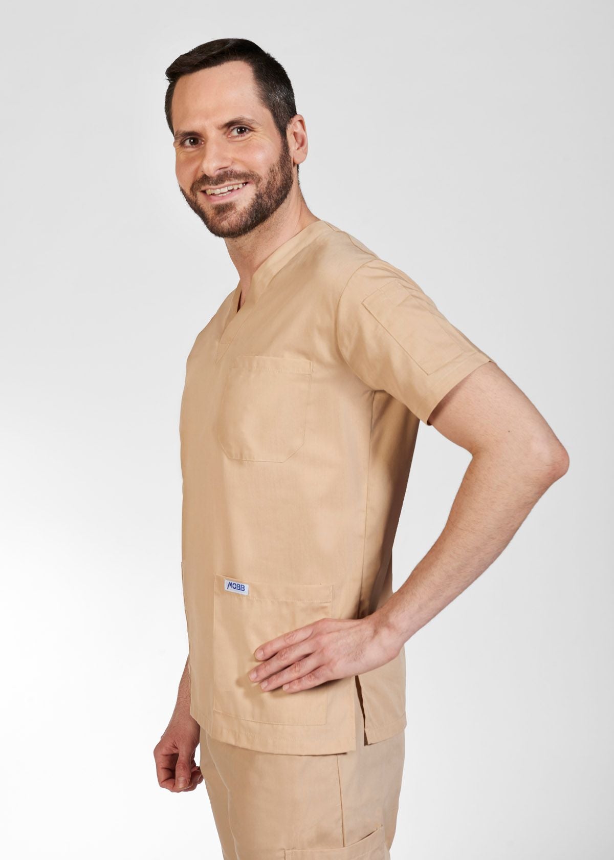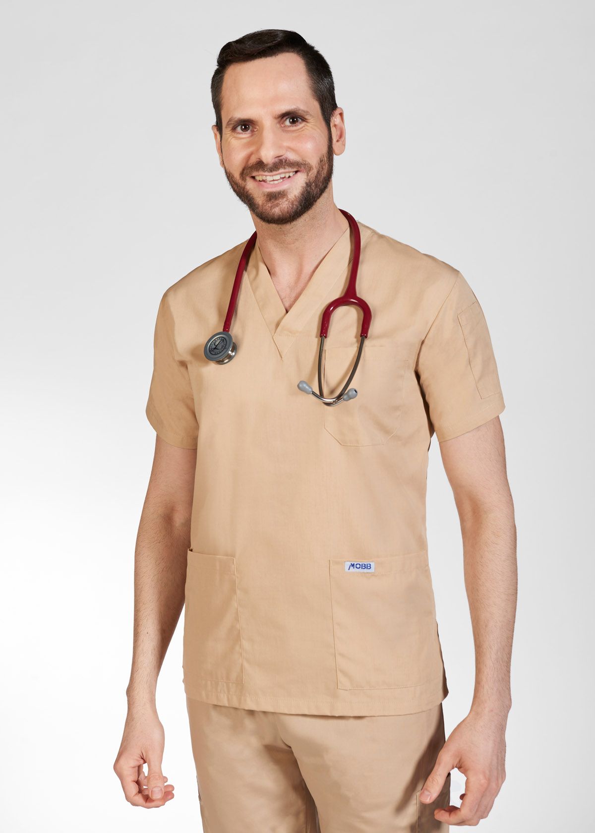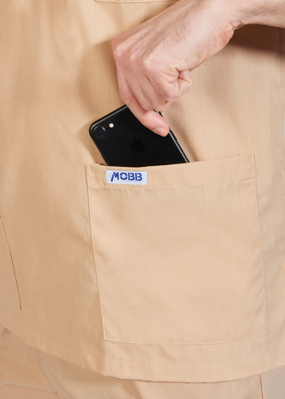 A classic v-neck scrub top popular among men and women. This top has a slightly longer hem line making it an excellent choice for anyone with a taller stature. This top has three front pockets, one shoulder pen pocket and is available in every MOBB color.