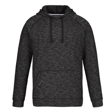 240 gsm – 7.1 oz./yd2 – 12 oz./lin. yd 60% cotton, 40% recycled polyester heathered brushed back French terry. Hidden under kangaroo pocket is a phone pocket with hook and loop closure. Adjustable drawcord in hood. Double layer self fabric cuff and hem.