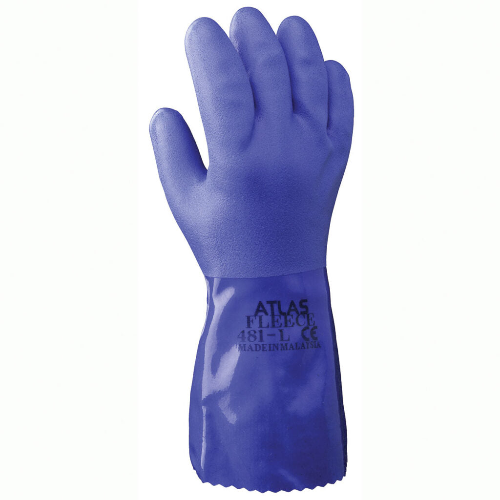 The SHOWA ATLAS 481 glove offers full PVC coating for excellent chemical resistance and durability.The interior features a comfortable acrylic/cotton fleeced liner for added warmth and insulation.