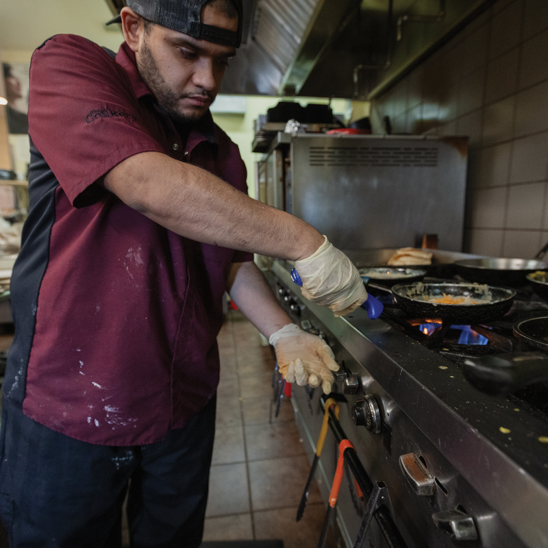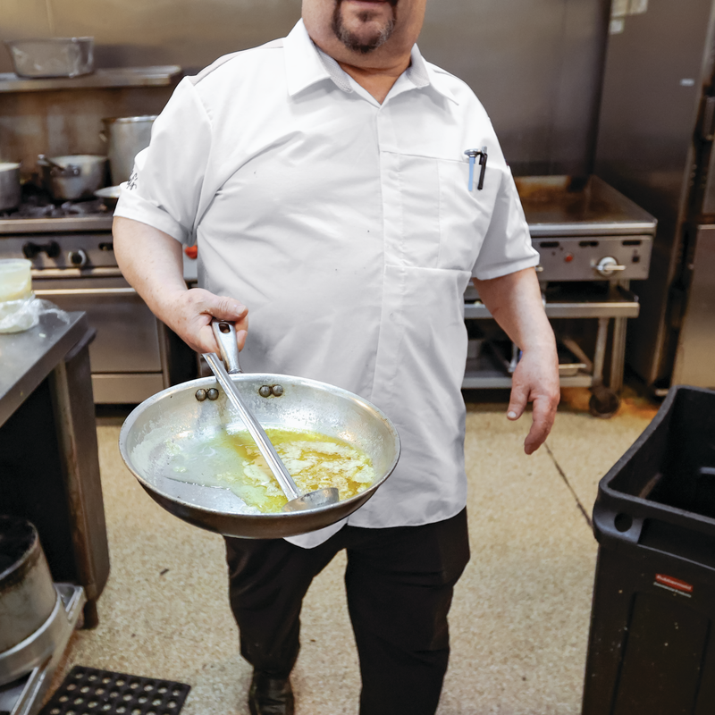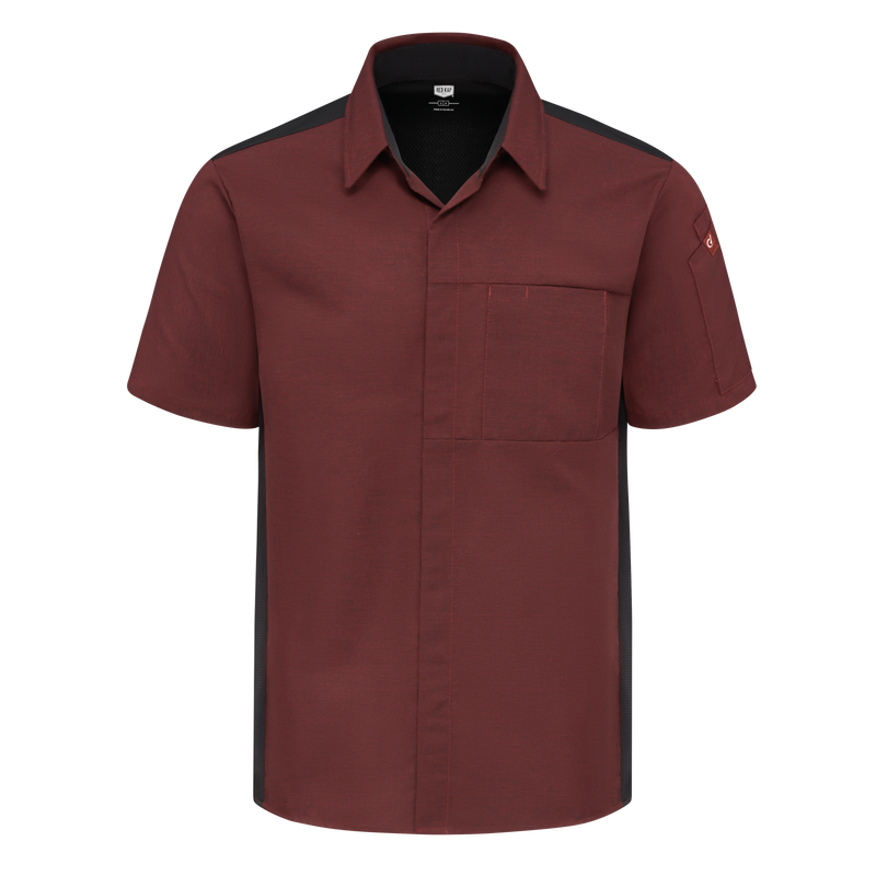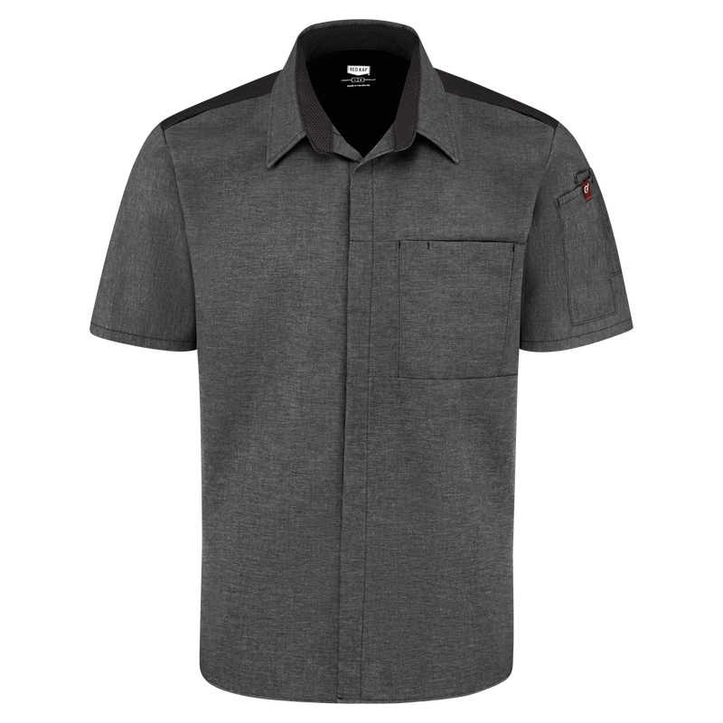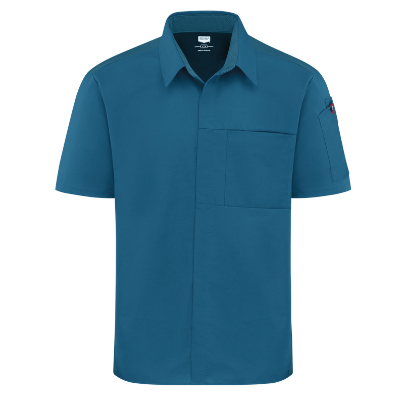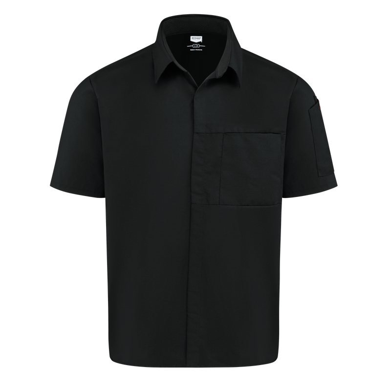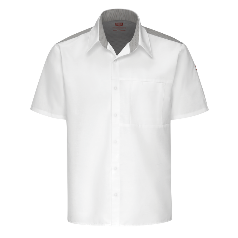 Keep your cool when things heat up in the kitchen thanks to our Men’s Airlfow Cook Shirt. Exclusive OilBlok Technology tackles the toughest cooking oils, so you look polished and presentable all shift long. The moisture-wicking, lightweight, and ultra-breathable mesh back makes this a perfect uniform for any hard-working cook. Plus, a chest pocket and dual sleeve pocket keeps pens, thermometers, and go-to kitchen utensils close at hand.