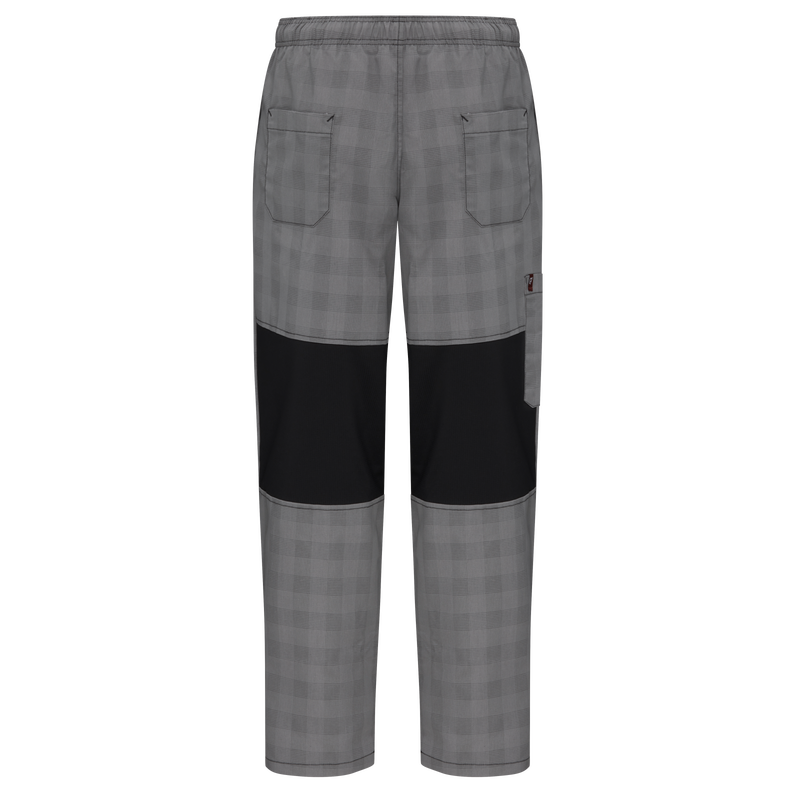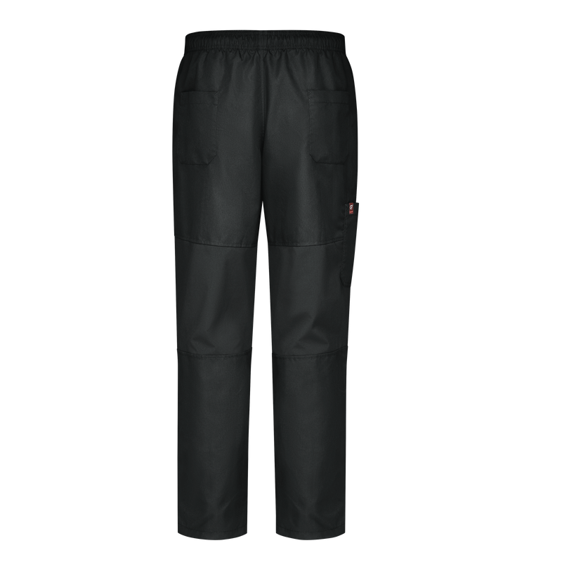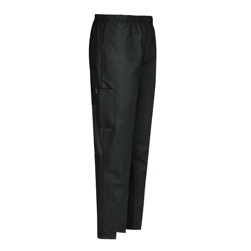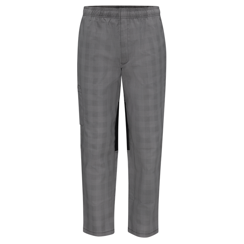 Stay cool and comfortable on the line in our Baggy Chef Pants for men. Perforated stretch panels at the waist and behind the knees help you keep you cool, while convenient pockets let you put things in their place. A straight fit through the leg and knee with slight tapering through the thigh provides a sophisticated look. And, the drawstring waistband with zipper fly wears comfortably all shift long. Plus, moisture wicking, soil releasing fabric provides a long-lasting professional image.