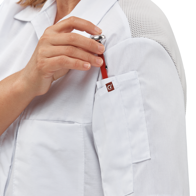 Exclusive OilBlok Technology makes the Women’s Airflow Cook Shirt a stand-out in the kitchen. Your go-to utensils will always be close at hand thanks to an angled chest pocket and dual thermometer sleeve pocket. Not to mention you’ll stay cool under pressure with a lightweight and breathable full mesh back.