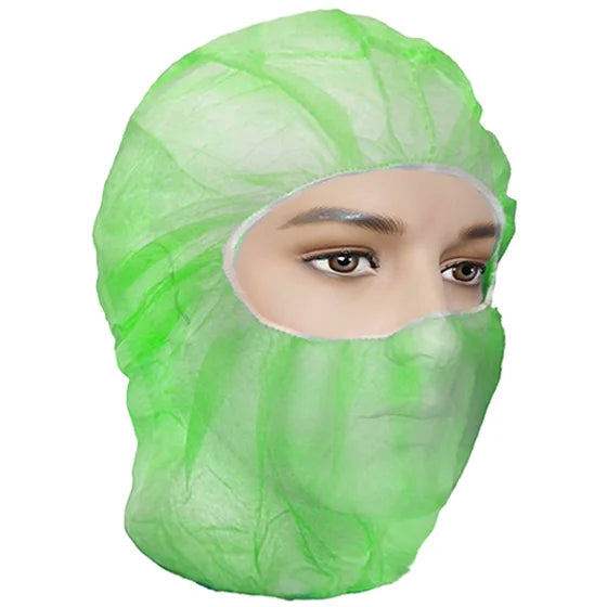 Manufactured from non-woven polypropylene, the RONCO CARE™ balaclava is designed for maximum protection and has a latex-free elastic face and neck opening for comfortable full-head enclosure. New and improved product design offers more comfortable eye openings and head-conforming fit. Ideal for clean or food safe work environments, the RONCO CARE™ balaclava is soft and breathable for long wear and offers a generous fit for long hair.