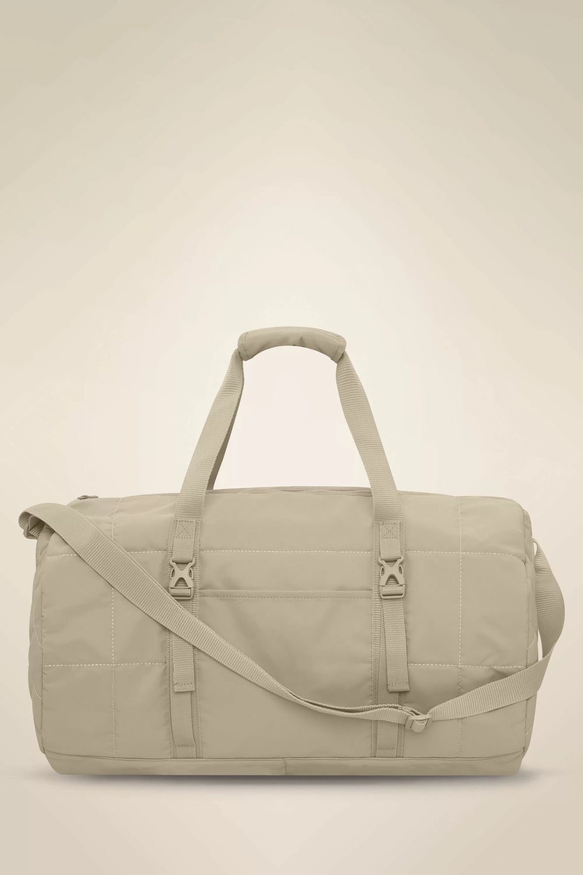 Chic without trying, this quilted duffel taps into the effortlessly cool, collegiate aesthetic dominating today’s fashion scene. With its quilted texture, soft matte finish, and rounded silhouette, this duffel blends sporty style with feminine flair — perfect for oversized crews, biker shorts, and casual streetwear.