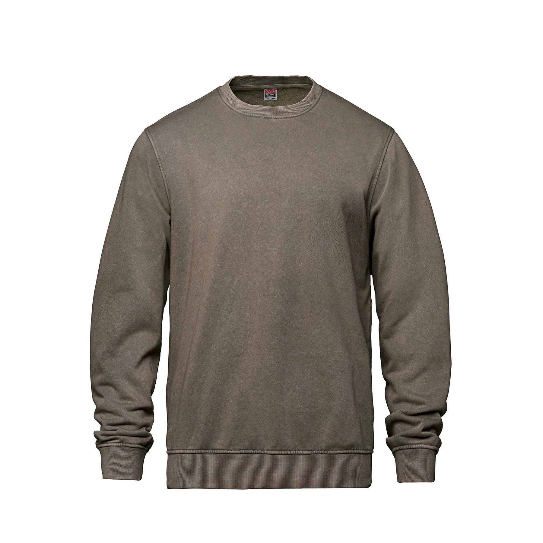 280 gsm - 8.3 oz./yd² – 14 oz./lin. yd Garment dyed 70% cotton, 30% polyester vintage wash fleece, 3 ply fleece, 100% cotton face for superior print surface. Rib knit neckline, cuff and hem with spandex. Tear away label. Shade variations are inherent with the garment dye process. Surcharges apply to 2XL-4XL.