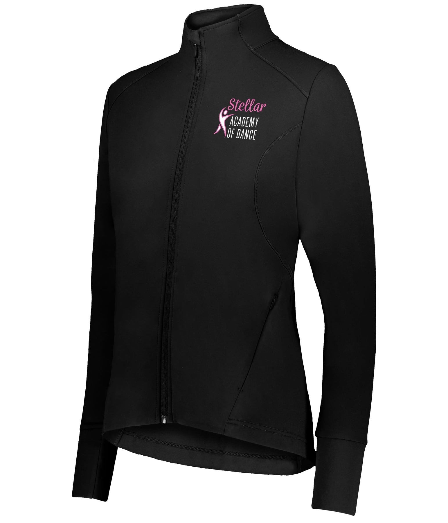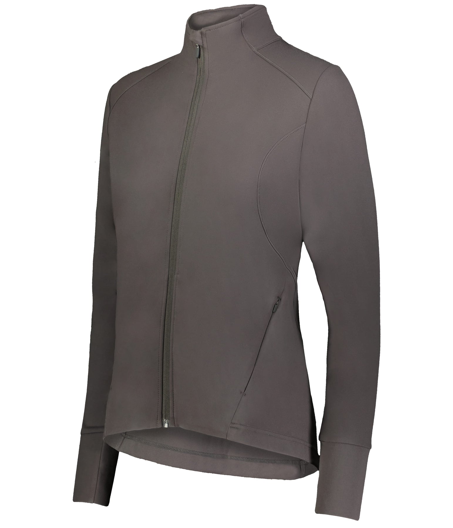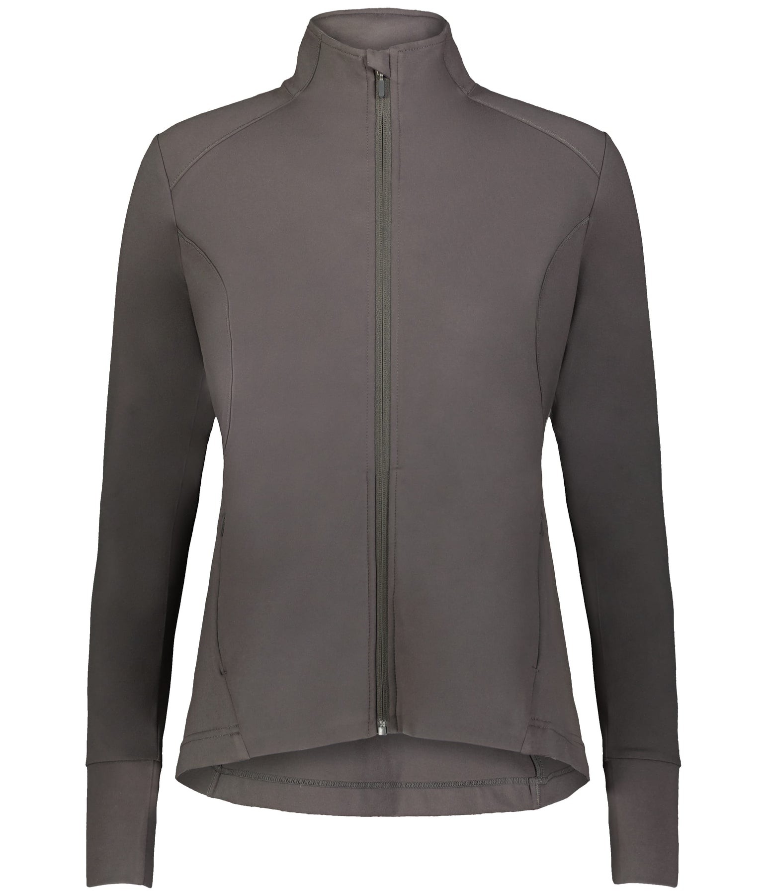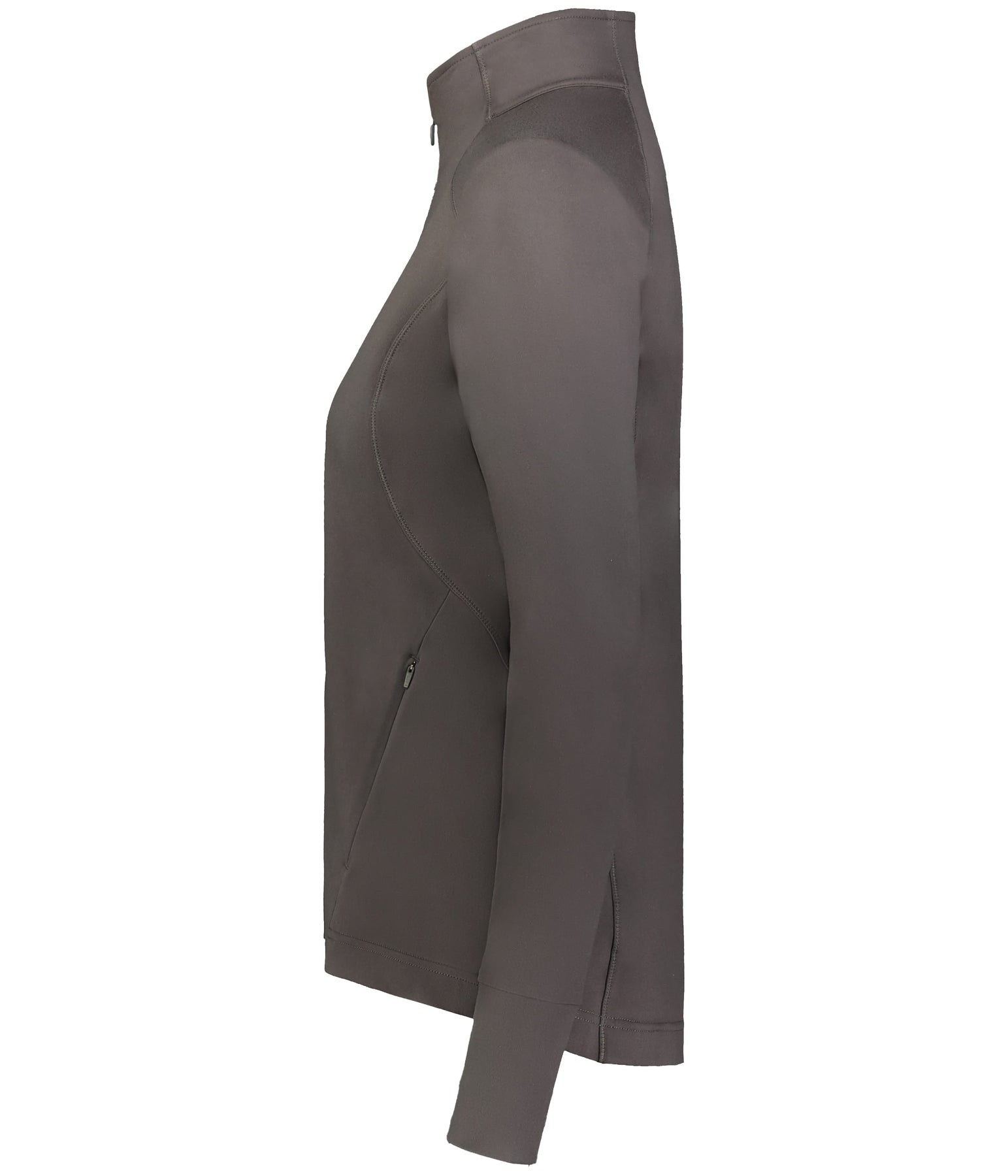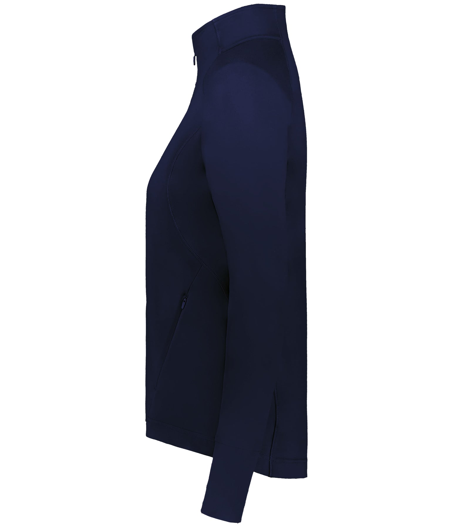 Performance jacket designed with Eco-Revive® stretch fabric, water resistance, and a dropped tail hem for added team coverage.