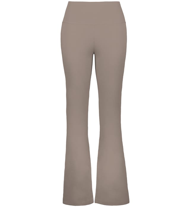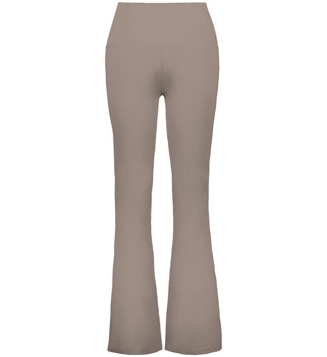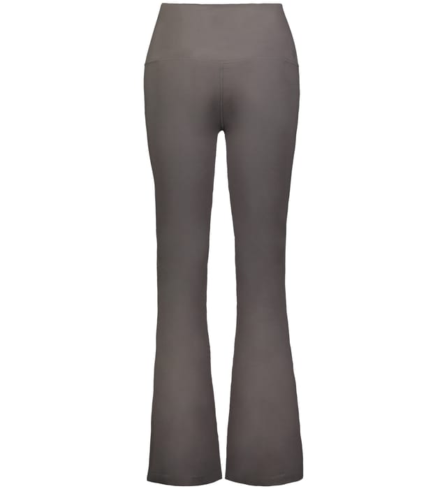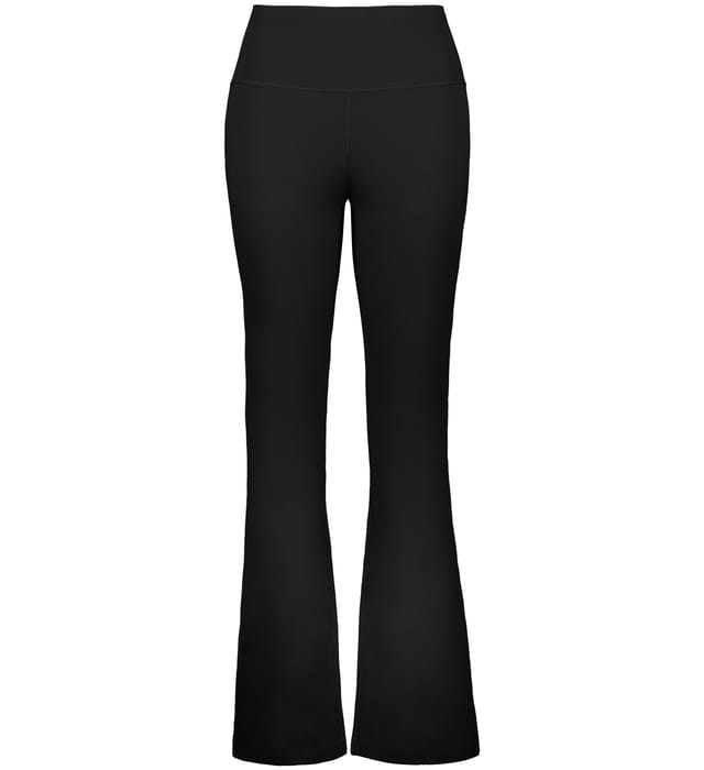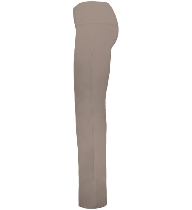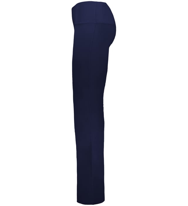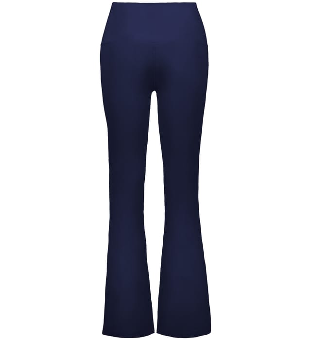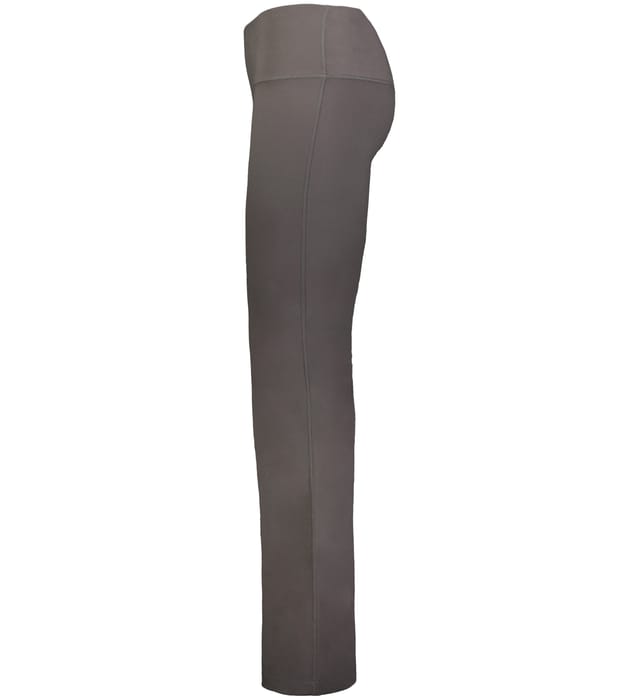 Built for comfort on the move, this ladies' fit, high-waisted pant features moisture-wicking stretch knit, flatlock seams, and a flare leg finish.
