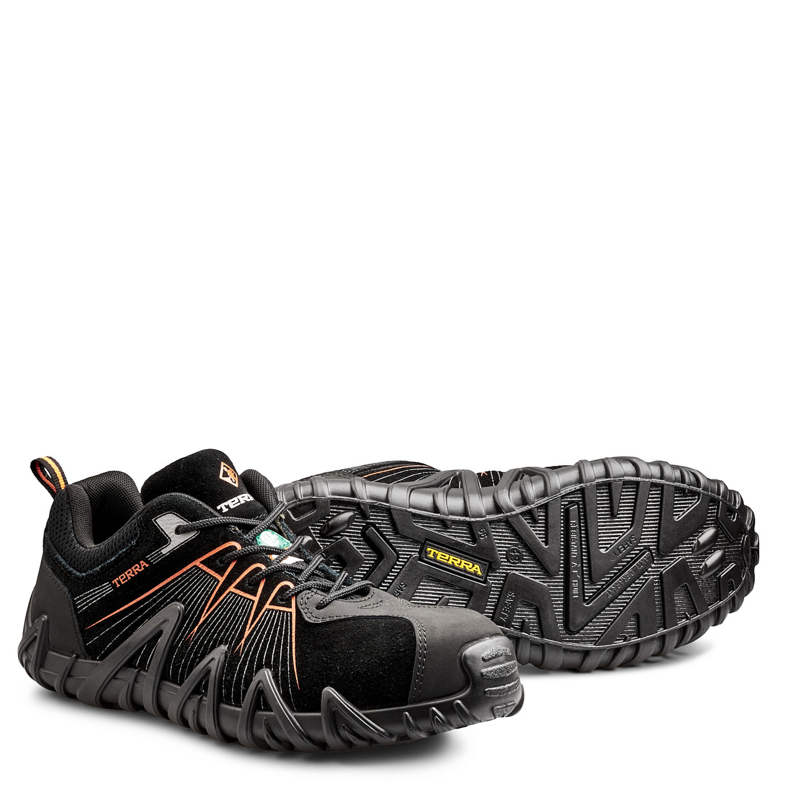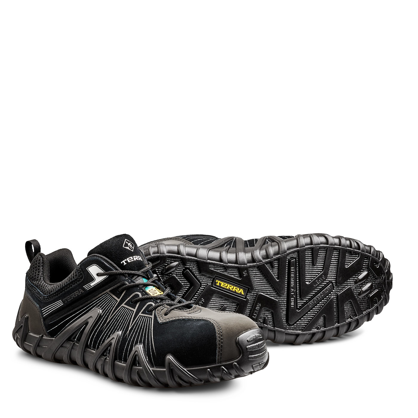 The Spider X fuses athletic-inspired design and work-ready safety technology. This safety shoe features a low-profile direct-injected PU midsole and outsole with supportive sidewall chassis. Underfoot, the premium PU FOOTBED® maximizes comfort while the CLEANFEET® odour-control liner wicks away moisture. Metal-free, lightweight and made to move—step into the TERRA® Spider X.