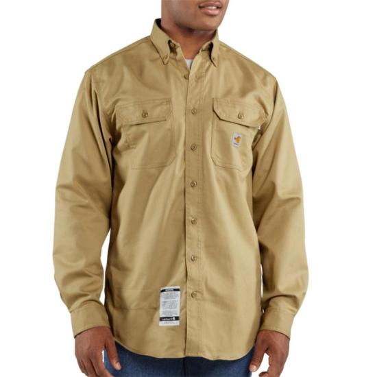 Designed to handle the most rugged working conditions, this men's button-down shirt keeps you safe from dangerous arcs and flame. It's made of FR twill, with durable triple-stitched seams. The utilitarian design features two flap pockets on the chest.